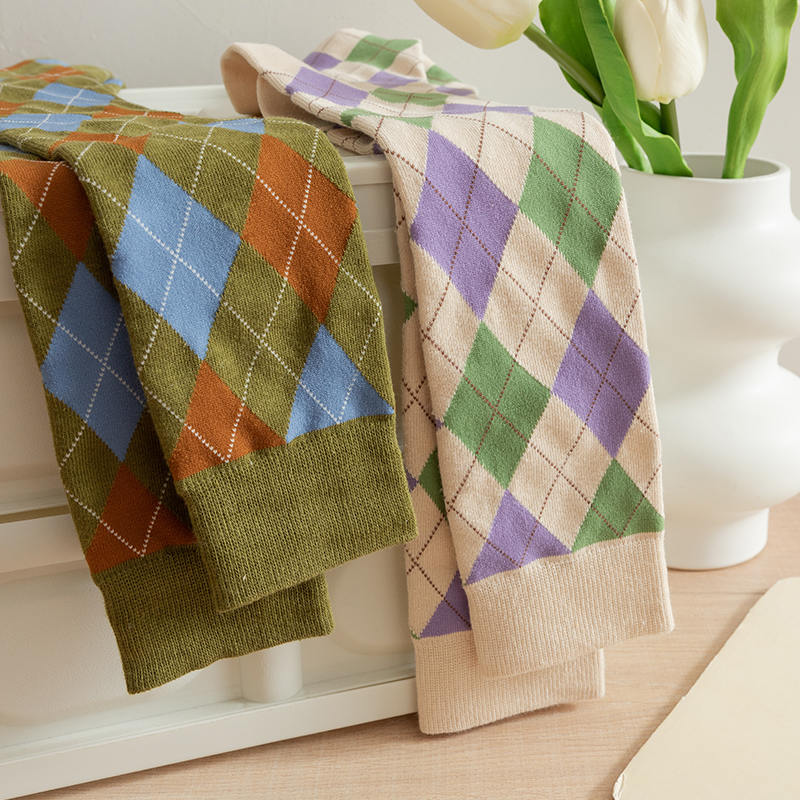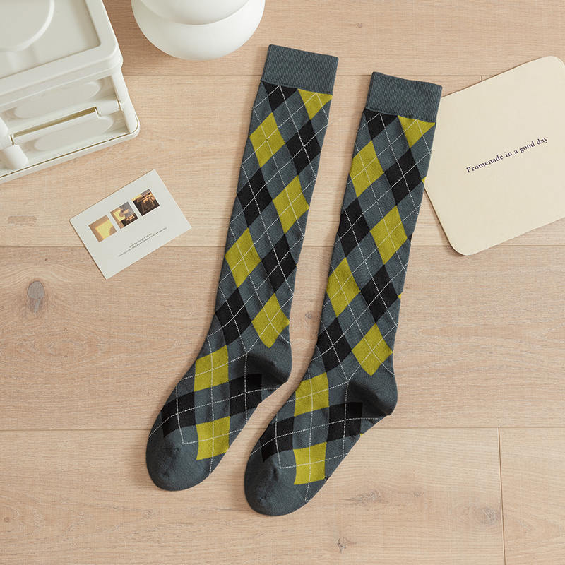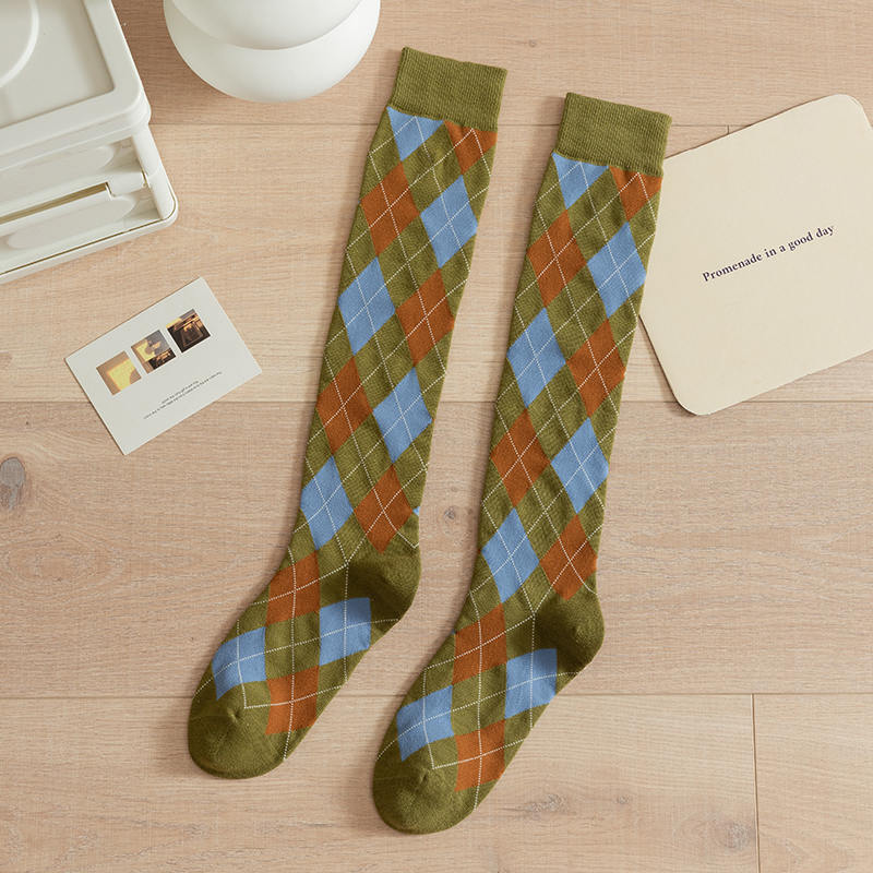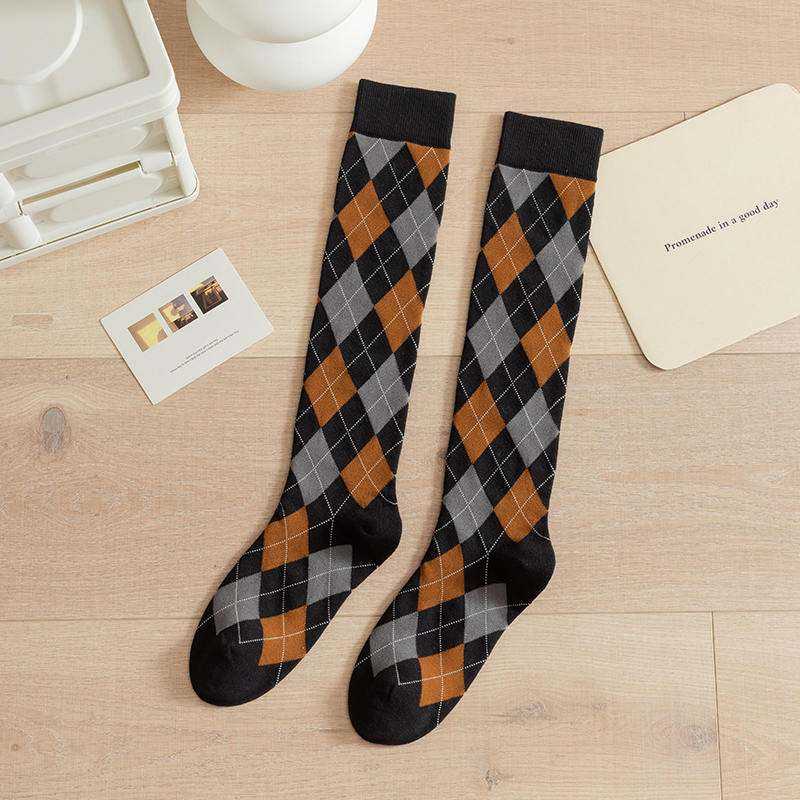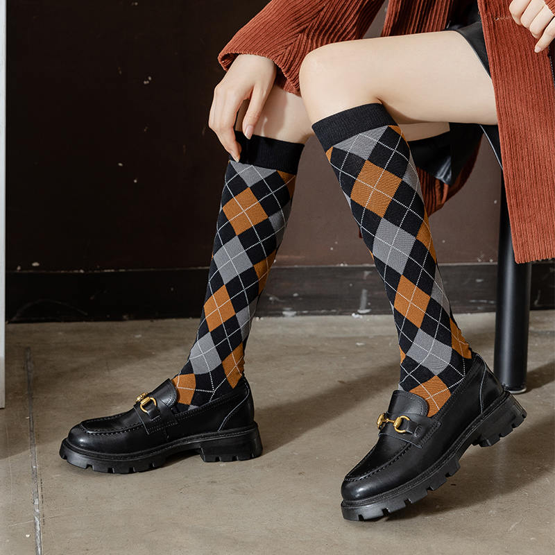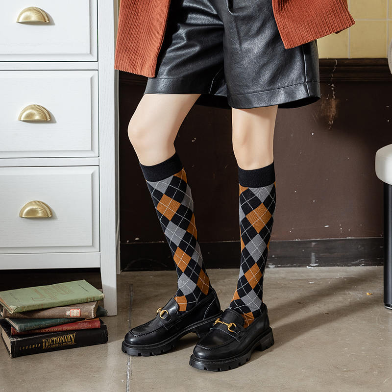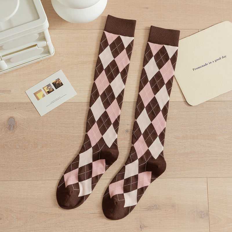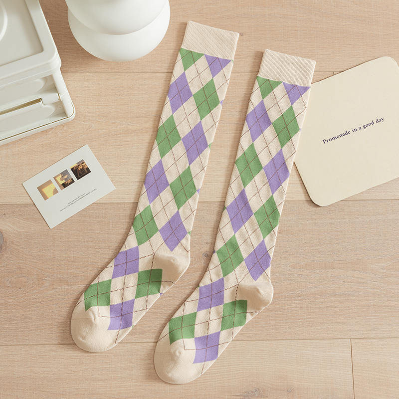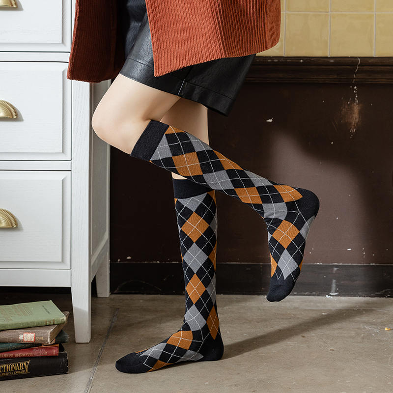 Gaya kaus kaki: Kaus kaki lutut katun argyle jacquard kaus kaki pesta seksi kaus kaki hiking kaus kaki wanita 9-11 B...